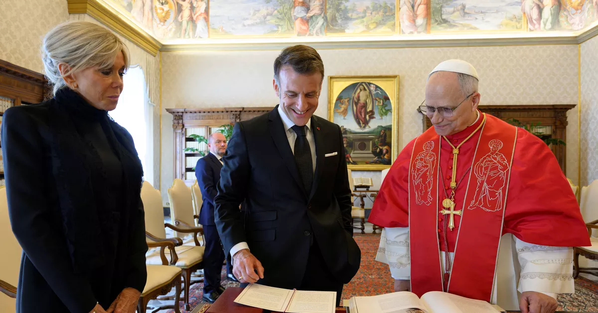 C’est sous un généreux soleil romain qu’Emmanuel Macron et son épouse Brigitte sont arrivés ce vendredi matin dans la cour Saint-Damase. Avant de pénétrer, escortés par les gardes suisses en tenue colorée, dans le palais apostolique du Vatican pour rencontrer Léon XIV. « Bonjour, bienvenue », lui a lancé en français le pape américain, avant un entretien particulier en anglais et sans interprète. Selon l’Élysée, la conversation a duré environ une heure, ce qui est plus long que l’usage pour une audience papale.