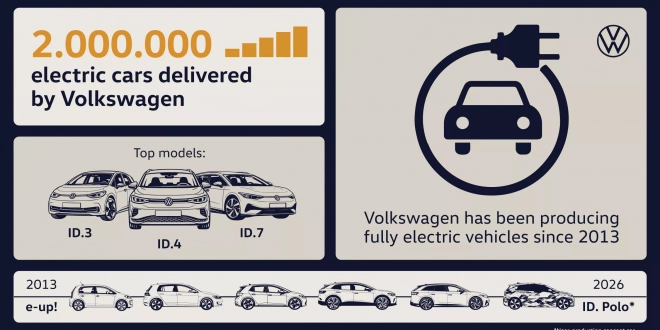 بدأت فولكس واجن رحلتها في عالم السيارات الكهربائية مع نموذج e-up عام 2013، ثم انطلقت بشكل جدي مع منصة MEB مع طراز ID.3 في 2020. في أبريل 2025، احتفلت الشركة بتسليم مليون سيارة كهربائية، عبر نموذج ID.3 GTX. يتصدر طراز ID.4 قائمة المبيعات، حيث سجل مع شقيقه ID.5 نحو 901 ألف عملية تسليم عالمياً، بينما أضاف ID.7 أكبر الطرازات نحو 132 ألف سيارة. يظل طراز ID.3، الذي سجل 628 ألف سيارة، من بين الأكثر مبيعاً.